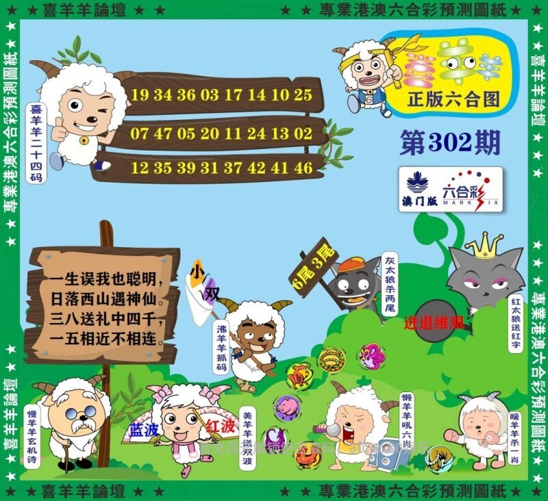 | 303期平特:☃️【羊羊羊】☃️ 303期二连:【羊鸡】【马兔】 303期三连:【羊鸡猪】【马兔龙】 |